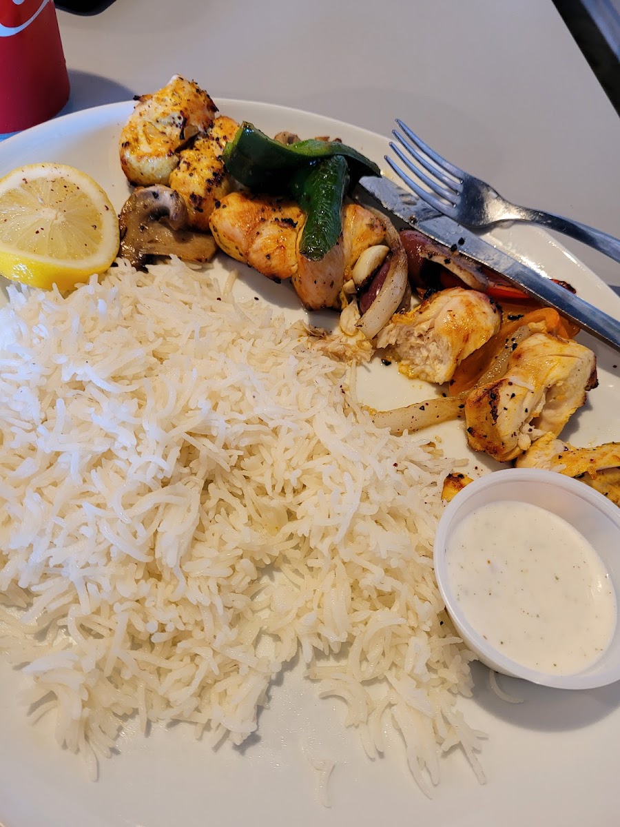 One of the restaurant’s standout offerings is the Veggie Combo with Hummus & Baba Ghanouj, a perfect choice for those who love fresh, healthy ingredients. The creamy hummus and smoky baba ghanouj pair beautifully with the veggie selection, making it a great option for vegetarians and vegans alike. If you're in the mood for something more hearty, the Shrimp Souvlaki is a must-try. This dish is full of flavor, with tender shrimp marinated in Mediterranean spices and grilled to perfection. For those who prefer a classic sandwich, the Falafel Sandwich is a fan favorite, featuring crispy falafel balls wrapped in soft pita bread with fresh toppings.